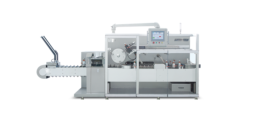 适用于药品铝塑板块、药瓶、化妆品、日用品、五金电器、扑克等以及相类似物品的装盒包装,能自动完成说明书的折叠,纸盒打开,物品装盒,打印