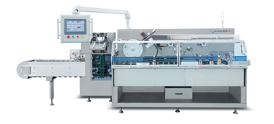 DXH- 220型自动装盒机属连续式高运行,是机电一体化的高科技产品。适用于药品铝塑板块、药瓶、化妆品、日用品、五金电器、扑克等以及相类似物品的装盒包装,能自动完成说明书的折叠,纸盒打开,物品装盒,打印批号,封盒等工作。